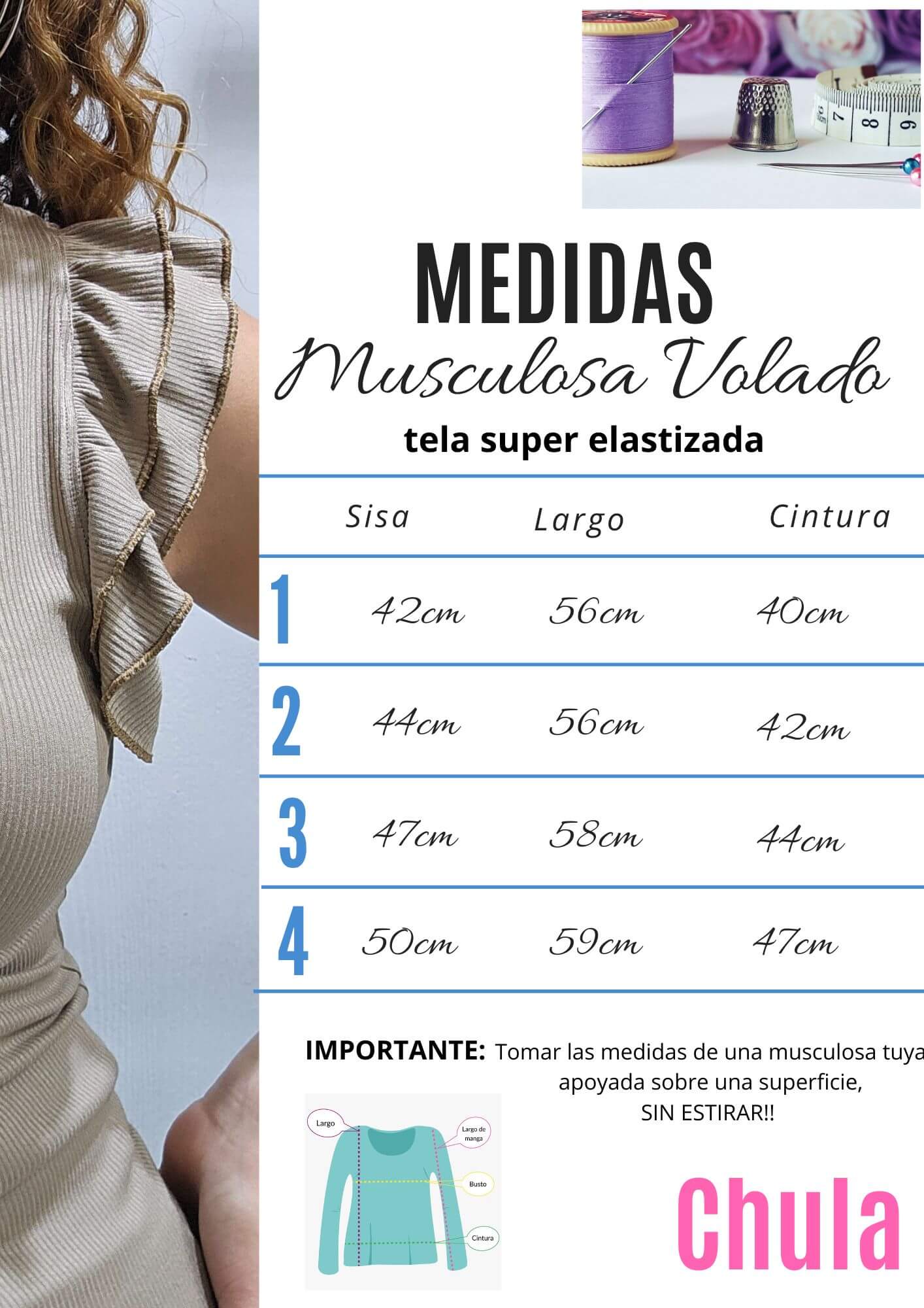 Para tomar las medidas, usa una prenda tuya que te quede perfecta, apoyala sobre una superficie plana y sin estirarla, medila como se muestra en la TABLA.